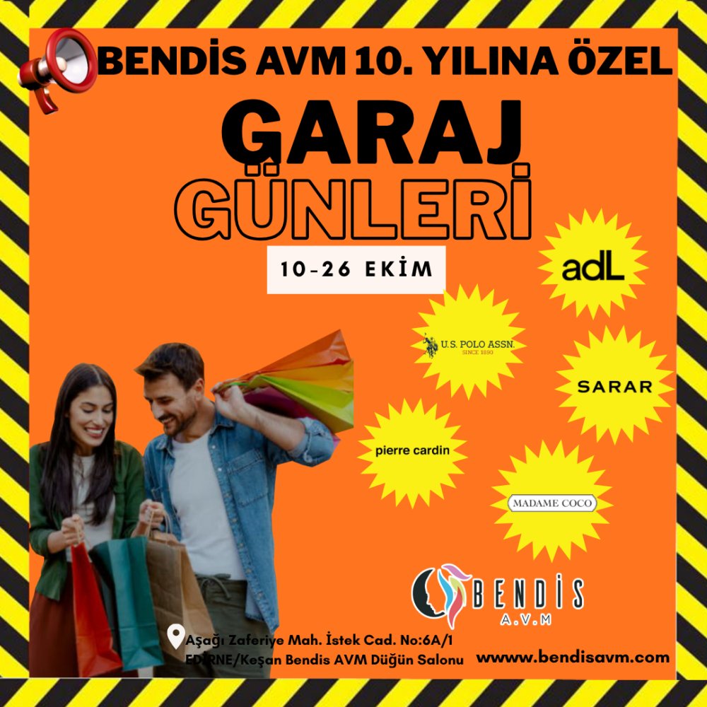Yok artık dedirten fiyatlarla Açılışımızın 10.yılına Özel Garaj Günleri Bendis AVM’de başlıyor. 10 Ekim - 26 Ekim tarihleri