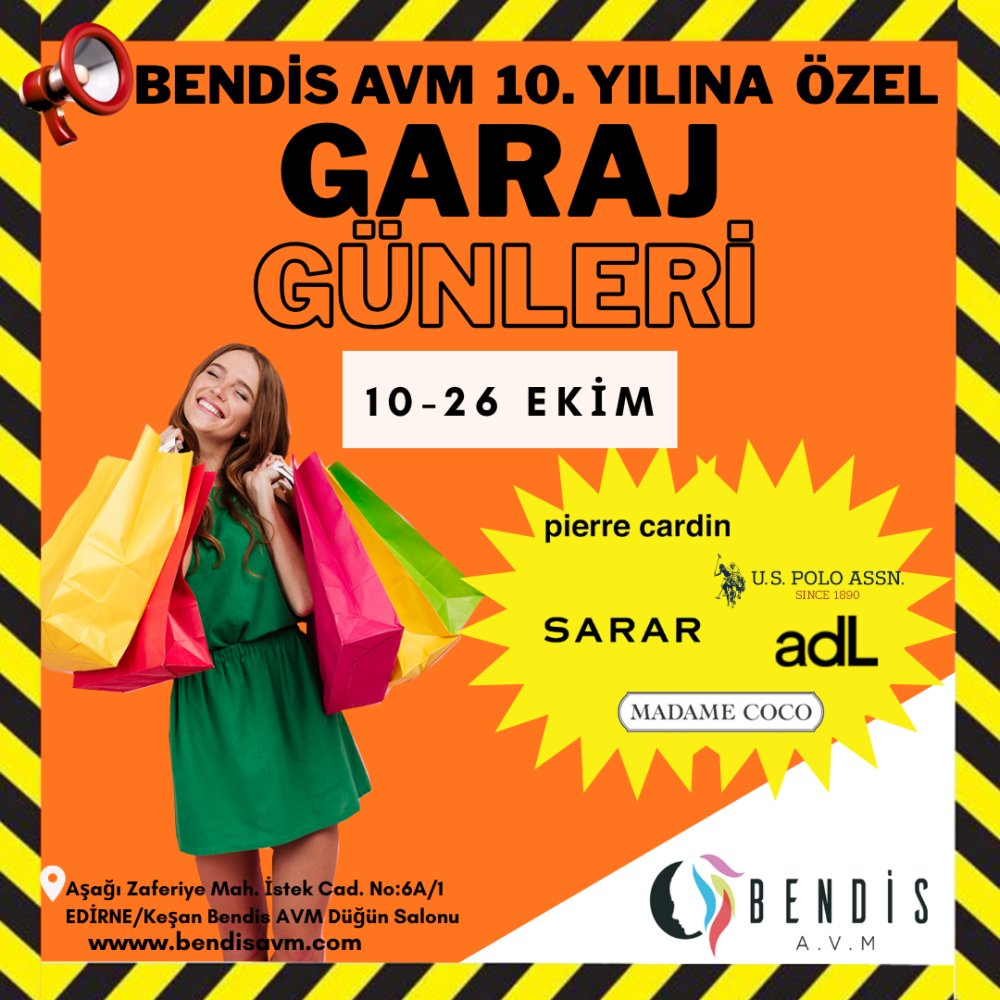 Açılışımızın 10. Yılına Özel İndirimlerle dolu Garaj Günleri Bendis AVM’de sizleri bekliyor.