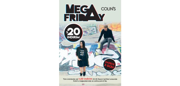 Bendis AVM’de Colin’s Mağazası’nda 23-25 Kasım tarihlerinde Tüm ürünlerde net % 20 indirim fırsatlarını sakın kaçırmayın!
