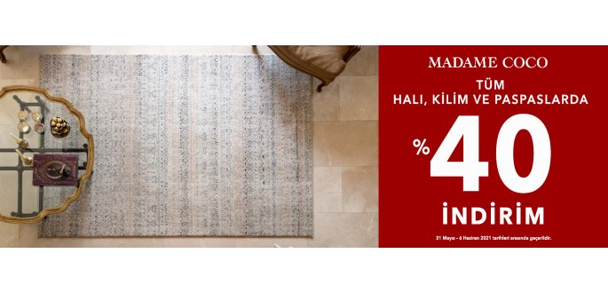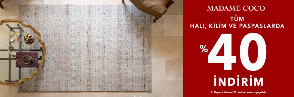 Bendis AVM Madame Coco'da tüm halı, kilim ve paspaslarda %40 indirim!