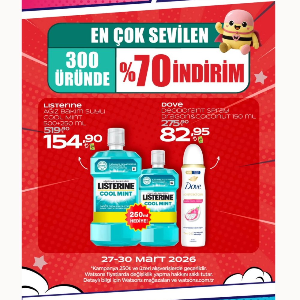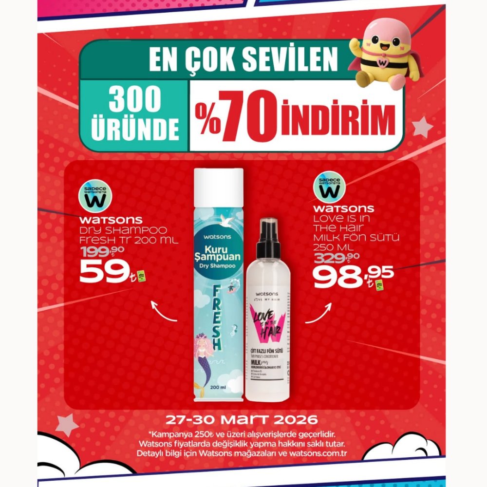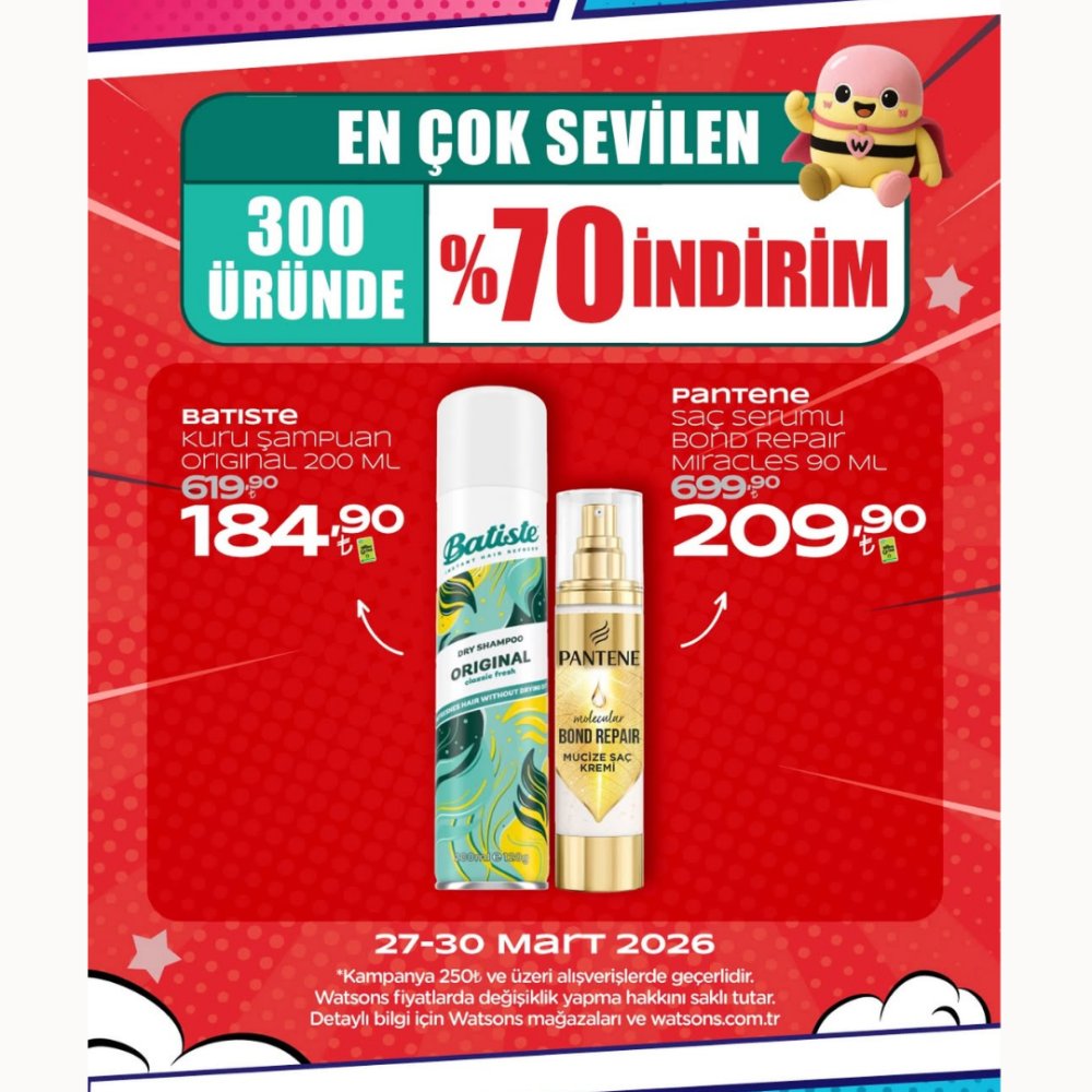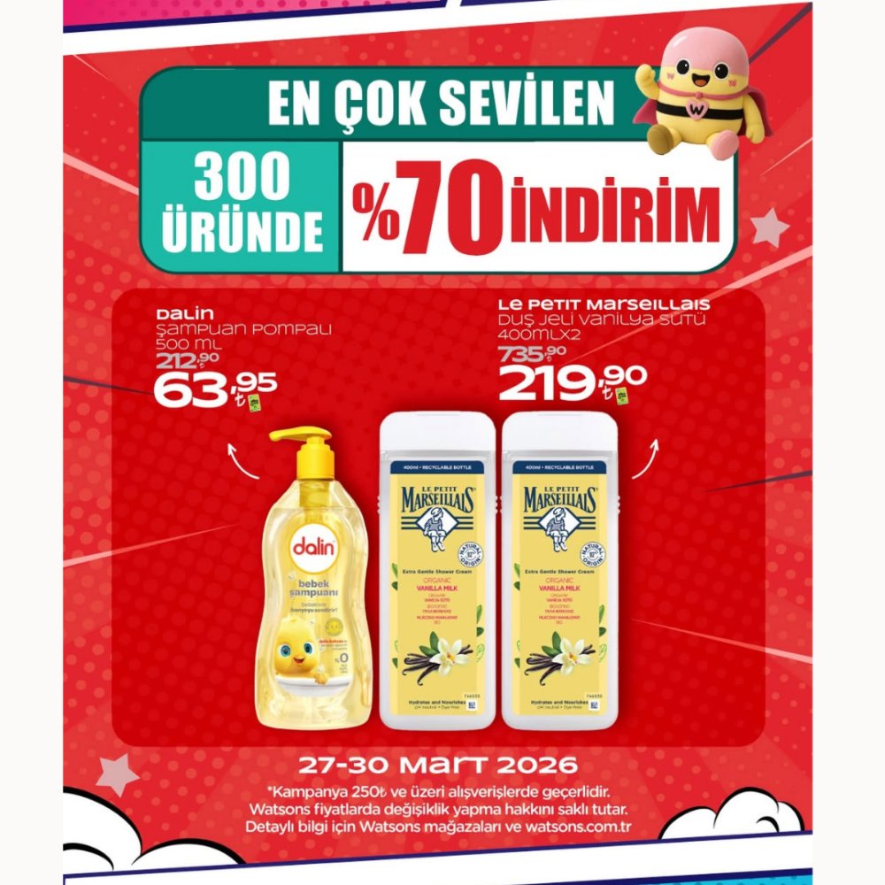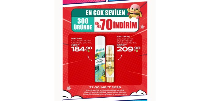 Watsons’ta En Çok Sevilen 300 Üründe %70 İndirimi Başladıı!